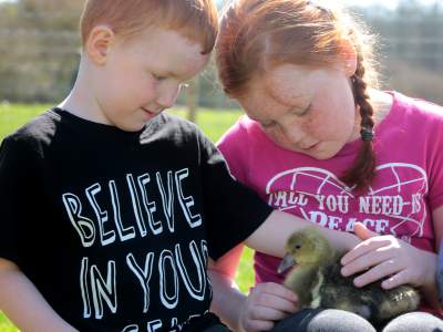 girl and boy Published July 19, 2017 at 400 × 300 in Meet farm animals and furry friends from Miller’s Ark petting farm in the MERL garden